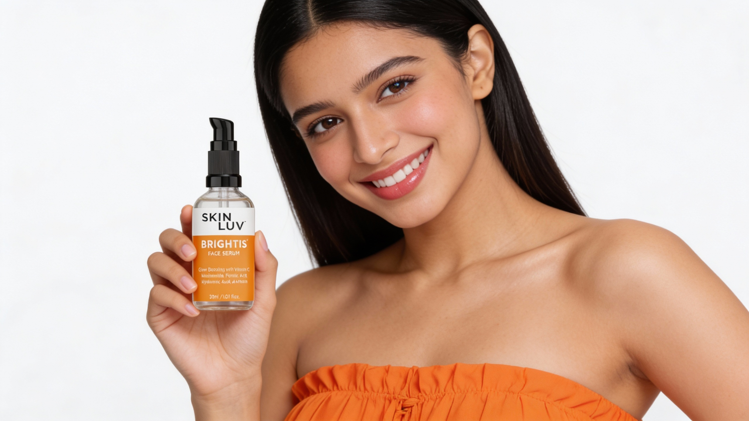 - Apply 3-4 drops of BRIGHTIS serum on your face. Spread it around and massage till it gets absorbed.